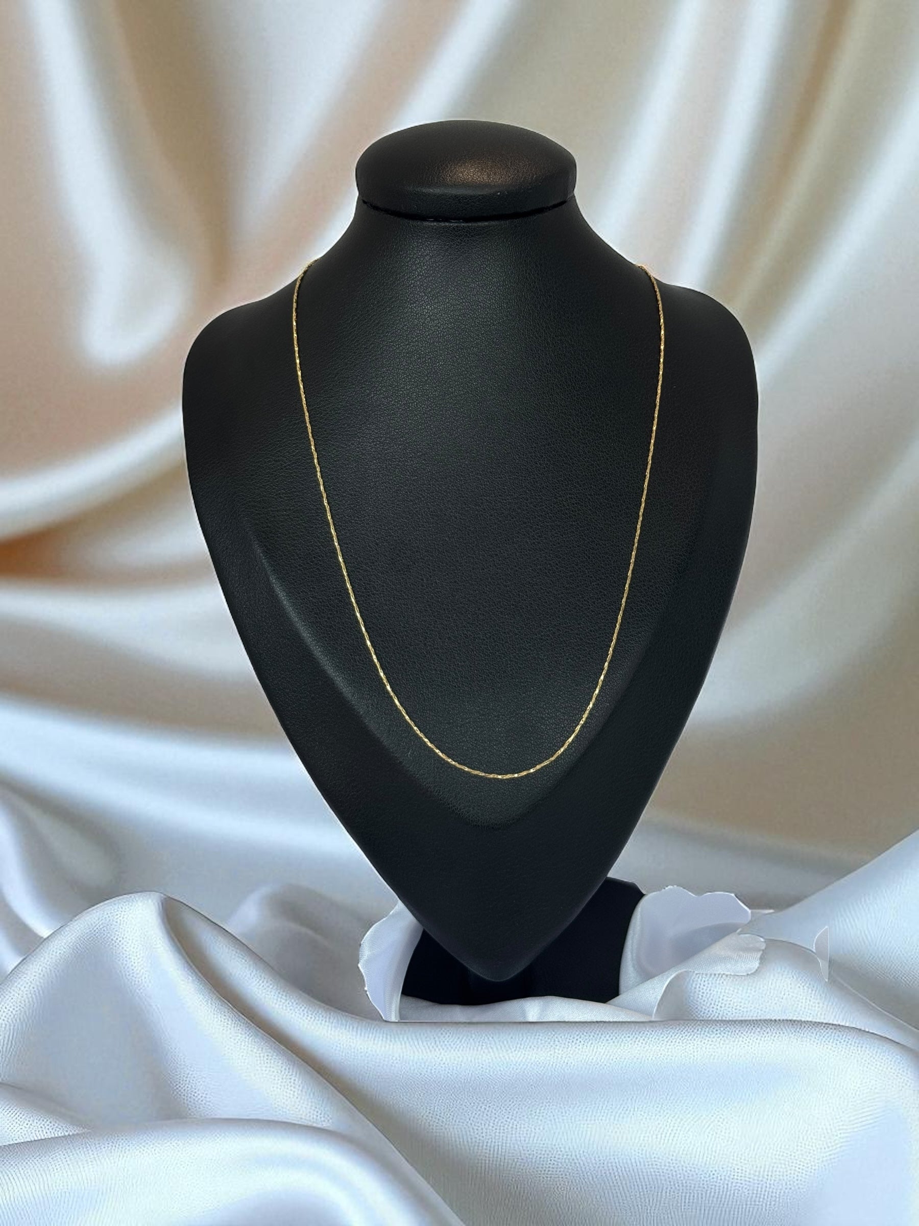 Está elaborada con materiales de alta calidad y un acabado pulido que realza su brillo y durabilidad. Su diseño de eslabones finos con textura rústica ofrece una apariencia elegante y ligera, perfecta para usar sola o con dijes pequeños. Una joya versátil que combina delicadeza y personalidad en cada detalle.