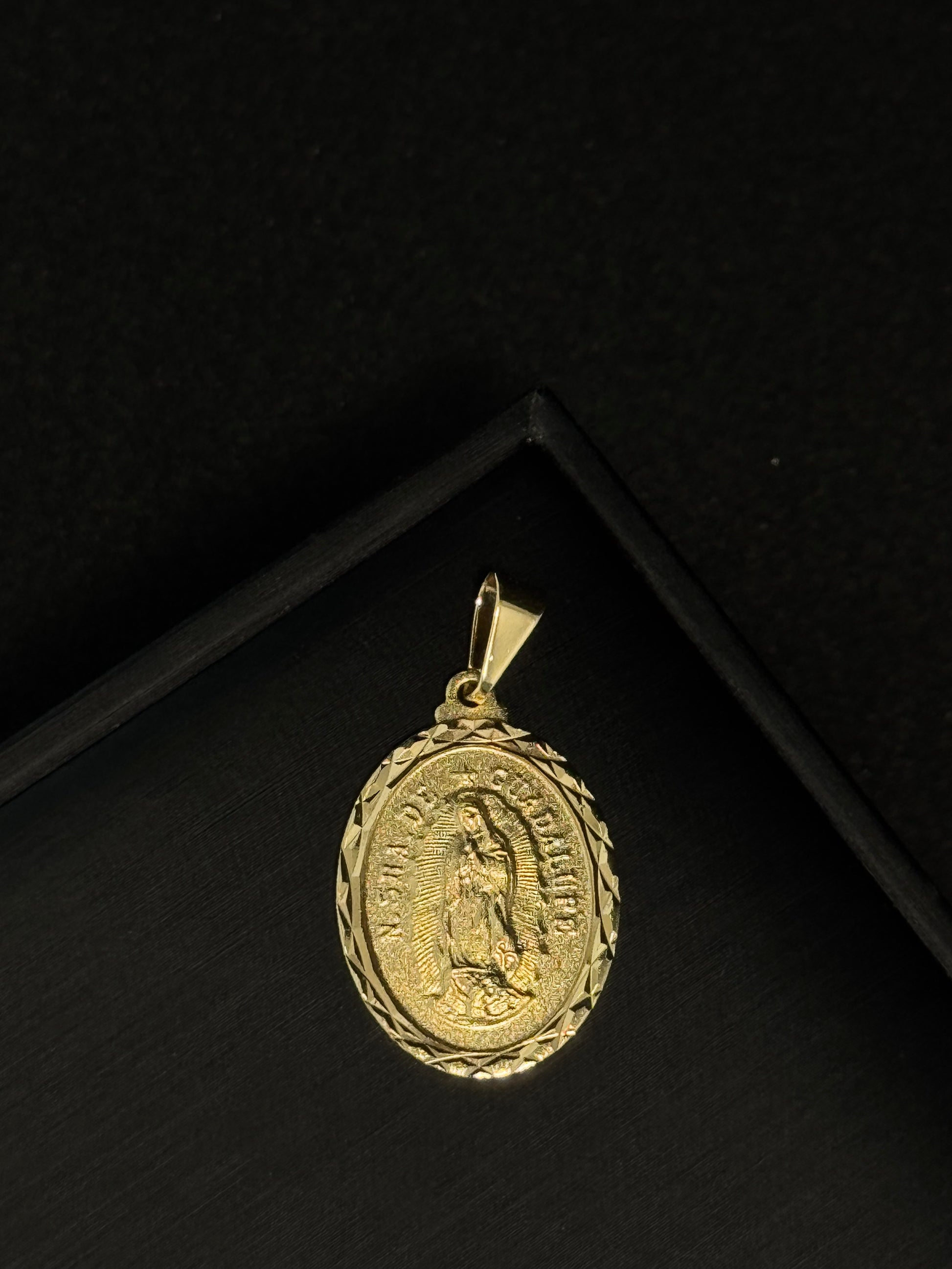Con un brillo inigualable, este dije diamantado de la Virgen de Guadalupe combina espiritualidad y lujo en una sola pieza.