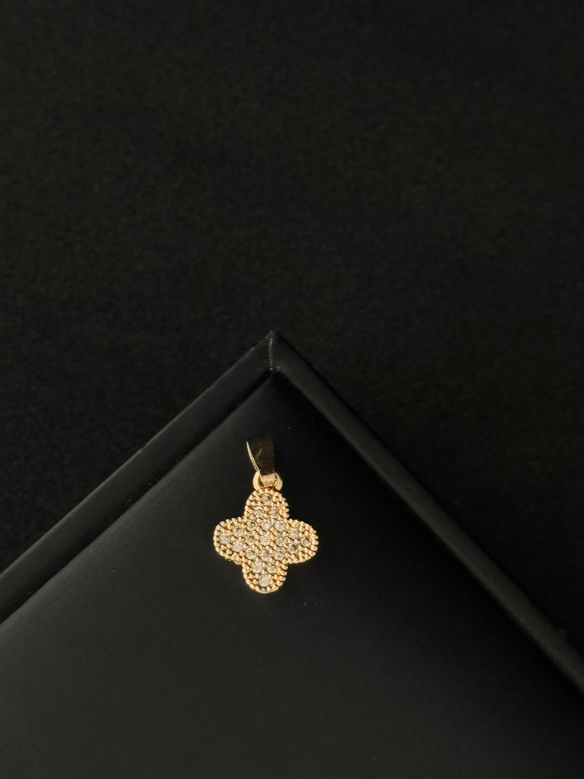 Un símbolo de buena suerte y esperanza. Su diseño en forma de trébol con incrustaciones de circones refleja brillo y energía positiva en cada detalle.