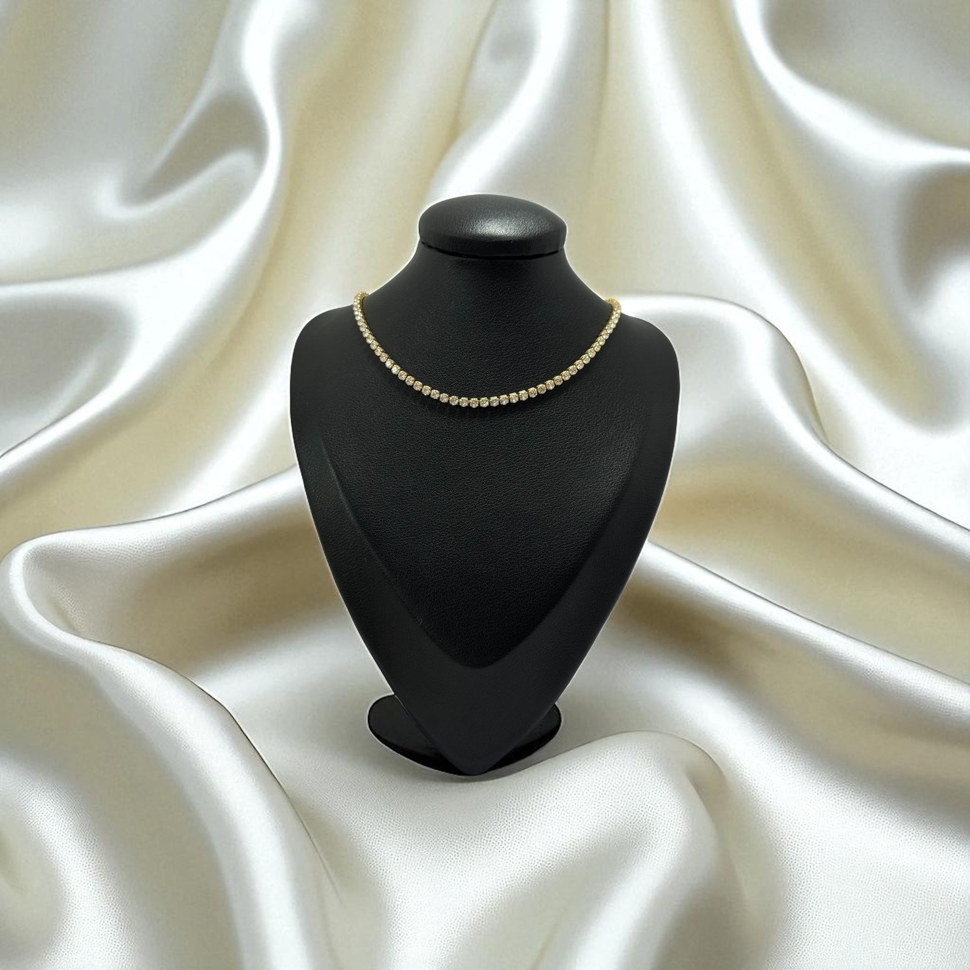 Está elaborado con materiales de alta calidad y finos detalles en cristal que reflejan la luz con cada movimiento. Su diseño ajustado al cuello ofrece una apariencia moderna, femenina y elegante, ideal para resaltar escotes o combinar con otras piezas. Una joya versátil que aporta brillo y sofisticación en cada uso.